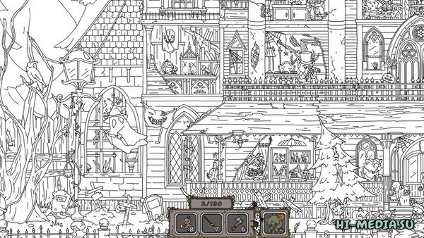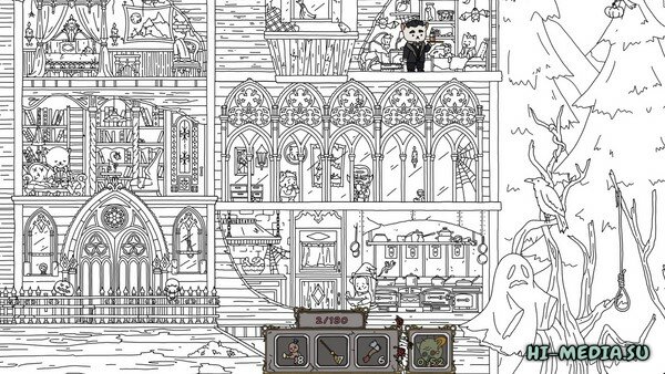 Сладость или гадость? Проверьте свою храбрость, исследуя зловещее поместье, населенное духами. Находите различные предметы и раскрашивайте черно-белую картинку цветными красками. В игре есть подсказка.