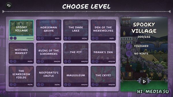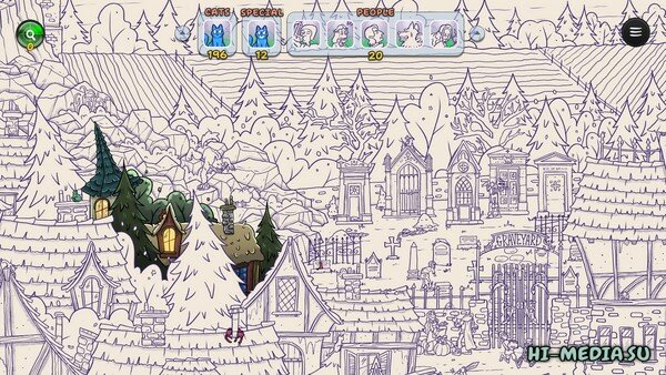 Каждый этап игры начинается с оттенков серого. Когда вы находите спрятанных котят и персонажей, мир наполняется красками, открывая замысловатые детали и жуткие сюрпризы. Познакомьтесь с уникальными кошачьими героями, обладающими мистическими способностями, и соберите красиво иллюстрированные открытки. Если вы соедините некоторых особенных кошек в пару, вы даже откроете новые бонусные уровни для изучения!