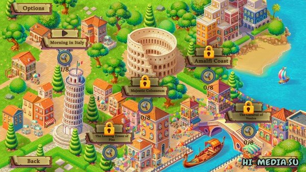 Присоединяйтесь к Элли в захватывающем путешествии по живописной Италии. Посетите Венецию и ее карнавал ослепительных масок, роскошных костюмов и ярких парадов с потрясающими декорациями и праздничной музыкой. В игре два режима сложности.
