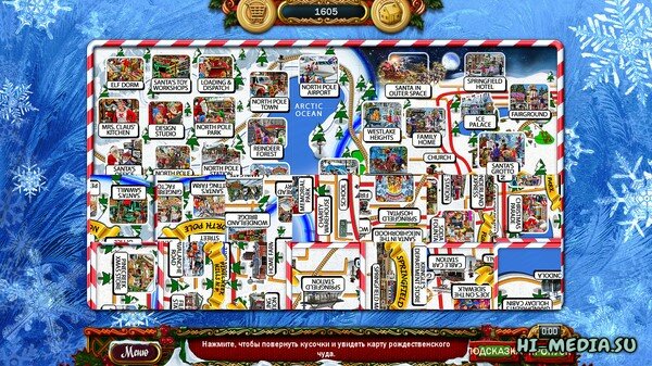 Вам предстоит новое путешествие в Спрингфилд. Ваша помощь нужна Санте в новом доме и мастерских на Северном полюсе. Полетайте на санях, посетите удивительный грот "Ледяной дворец". Выиграйте удивительную мистическую экскурсию на экспрессе "Страна чудес Санты" на Северном полюсе. Примите участие в сенсационном Рождественском параде в Спрингфилде. Получайте потрясающие награды и достижения. Найдите Снеговика Фрости. Делайте фотографии, создавайте альбомы.