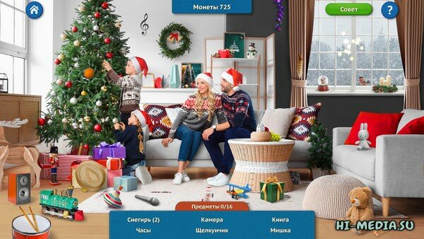 Приближается Рождество! А это значит, что пришло время окунуться в атмосферу праздника. На этот раз вас ждет множество тематических локаций, наполненных рождественским волшебством, и еще более широкий выбор мини-игр. Устройте уютную праздничную комнату или отправляйтесь в мастерскую Санты, чтобы помочь эльфам собрать игрушки. Играйте в мини-игры, ищите спрятанные предметы, проходите уровни "три-в-ряд", собирайте пазлы и разгадывайте загадки. Проходите уровни, чтобы получать монеты, которые вы можете потратить на коллекционные предметы для оформления вашей комнаты. В этой игре каждый найдет что-то для себя!