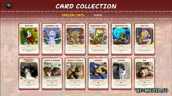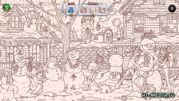 Отдохните в парке "Рождественский мир". Каждый этап начинается в оттенках серого. По мере того, как вы находите спрятанных котят и персонажей, мир наполняется красками, открывая детали. Познакомьтесь с кошачьими друзьями и соберите красиво иллюстрированные открытки. Если вы соедините некоторых особенных кошек в пару, вы даже откроете новые бонусные уровни для изучения!