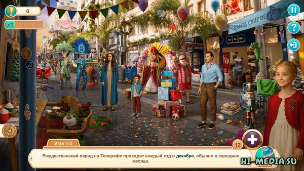 Проведите Рождество на Канарских островах с Грегом, Мелоди, Дейзи и Дастином Хиллом. Они отправляются в солнечный круиз к теплым берегам Тенерифе. Путь проходит через оживленный круизный порт Санта-Крус, над вулканическими пейзажами Лансароте, через оживленный пирс Лос Кристианос и по сияющим дорожкам парка Лас Кантерас. На каждой остановке вас ждут новые краски, изумительные вкусы и маленькие чудеса. Наблюдая за семейными праздниками в Хилле, находите спрятанные предметы среди сувениров и ракушек, решайте забавные сезонные головоломки, собирайте праздничные сокровища и погружайтесь в уютную рождественскую атмосферу.