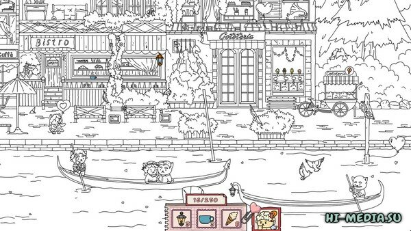 Проверьте свою внимательность и отправляйтесь на поиски различных предметов. Исследуйте уютные водные каналы городка в день всех влюбленных и найдите все скрытые предметы, чтобы раскрасить черно-белую картинку.