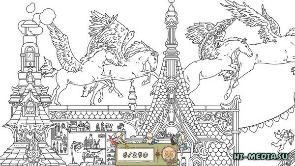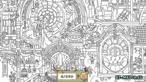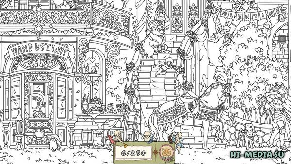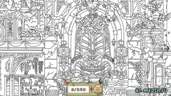 Отправляйтесь в удивительное путешествие по захватывающим райским пейзажам, нарисованным от руки, и находите хитро спрятавшихся милых котиков среди монументальных строений, летающих купидонов и влюбленных живых существ. Каждый найденный котик оживляет черно‑белую картинку яркими красками.