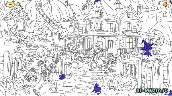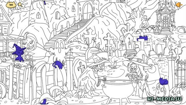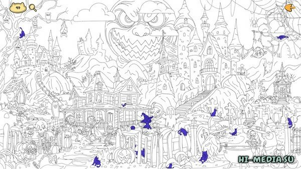 Исследуйте красиво нарисованную от руки атмосферу Хэллоуина, наполненную очаровательными деталями, игривой анимацией и, конечно же, кошками, искусно спрятанными на виду. Каждый уголок сцены наполнен причудливой атмосферой, от светящихся тыквенных фонарей и домов с привидениями до волшебных замков и уютных осенних уголков.